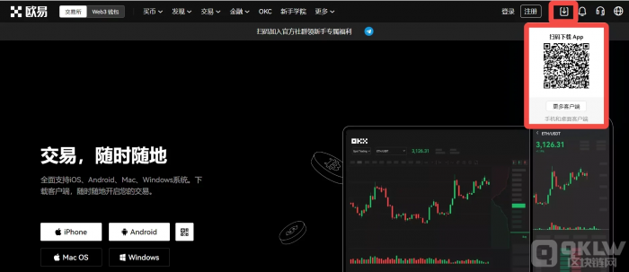 打开欧易官网,点击下载图标,用手机扫描出现的二维码(建议用浏览器进行扫码,微信扫码可能会出现网页停止访问的情况),点击【本地下载】,然后根据提示完成下载、安装。